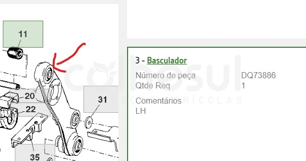 A JOHN DEERE® é marca registrada por JOHN DEERE & COMPANY EUA e JOHN DEERE BRASIL LTDA. Imagens, números, símbolos, descrições e nome do fabricante são somente usados como fins de referência, denominando que nenhum produto por este site anunciado seja deste fabricante. A Colhesul não possui nenhum tipo de vínculo com a marca JOHN DEERE®